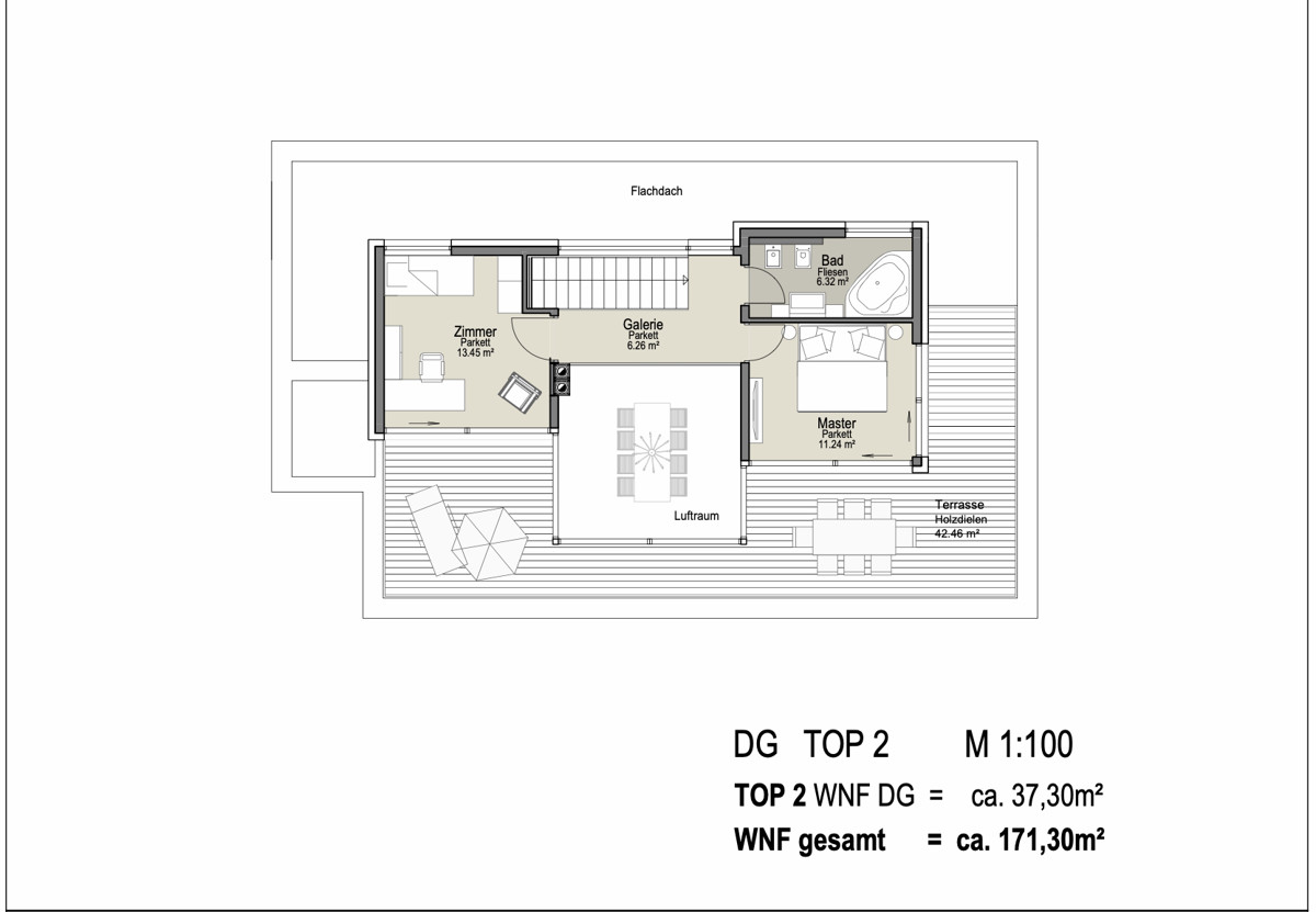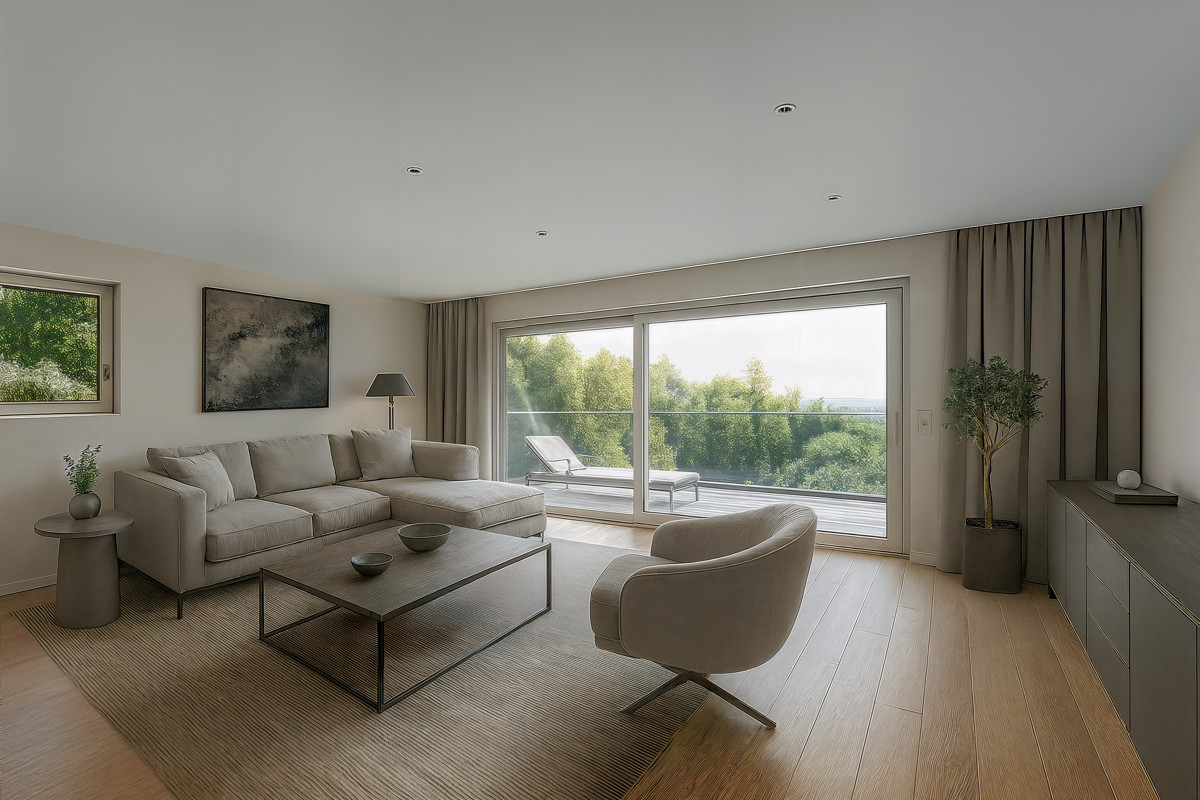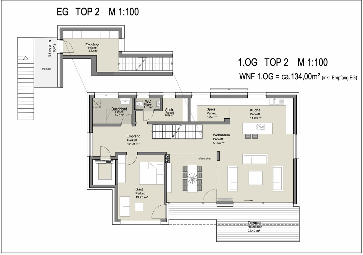 Die Top 2 ist als Penthouse-Maisonette konzipiert. So gibt es neben einer großen Terrassenfläche im Erdgeschoss auch noch eine Terrasse im Obergeschoss. Die Aufteilung ist funktionell und gut durchdacht. Der großzügig gestaltete Wohn-Küchen-Essbereich ist das Herzstück der Wohnung. Eine praktische Speisekammer, ein Abstellraum, ein Duschbad und ein Gästezimmer befinden sich ebenfalls auf der Etage. Weitere 2 Schlafräume und ein modernes Bad befinden sich im Obergeschoss. Genießen Sie den herrlichen Festungsblick von den Wohn- und Schlafräumen ebenso wie von der Terrasse.