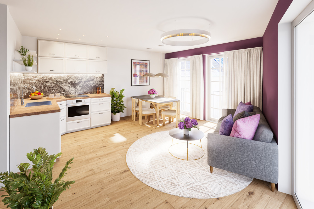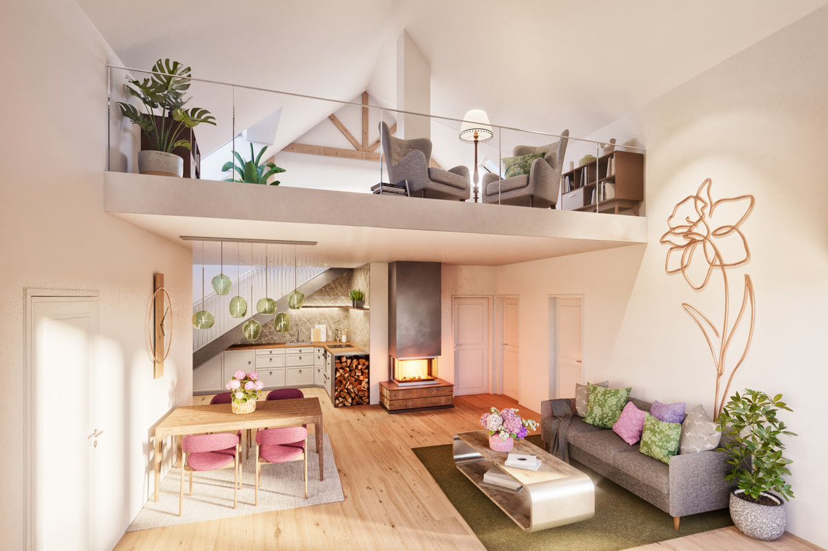 Das Interieur ist nicht im Kaufpreis inkludiert. Bei den angegebenen Bildern handelt es sich um Visualisierungen, um eine Vorstellung für das fertige Projekt zu bekommen. Hier können geringfügige Abweichungen zur tatsächlichen Ausführung entstehen.
