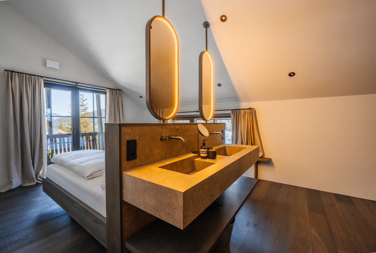 Die insgesamt sieben einzigartigen Lodges des Birgkar Mountain Hideaway sind mehr als nur exklusive Rückzugsorte – sie sind eine moderne Hommage an das Ursprüngliche. Hochwertige Materialien wie Holz, Leinen und Edelstahl sorgen für eine warme, natürliche Atmosphäre. Jedes Element ist mit Bedacht gewählt, um ein Ambiente zu kreieren, das Ruhe ausstrahlt, inspiriert und gleichzeitig als wertvolles Investment überzeugt.