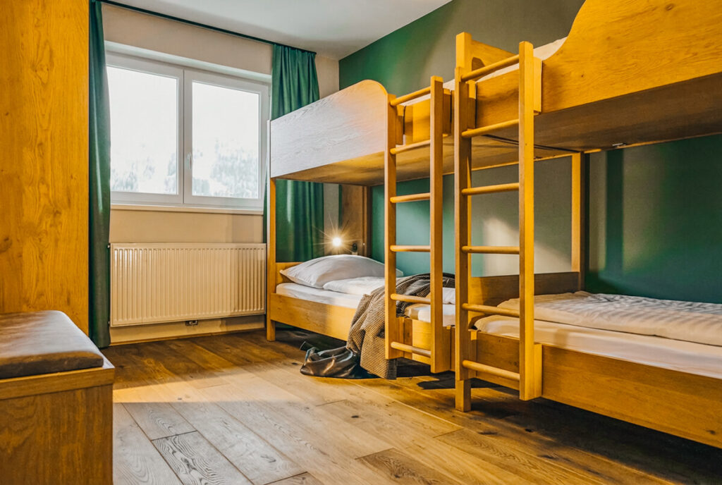 Das Alm Chalet für 12–14 Personen bietet auf rund 108,55 m², verteilt über drei Ebenen (Erdgeschoss, 1. und 2. Obergeschoss), außergewöhnlich viel Raum für gemeinsames Urlaubserleben. Vier getrennte Schlafzimmer – zwei mit komfortablen Doppelbetten sowie zwei weitere mit jeweils zwei Stockbetten – schaffen flexible Schlafmöglichkeiten und eignen sich ideal für große Familien oder mehrere befreundete Paare.