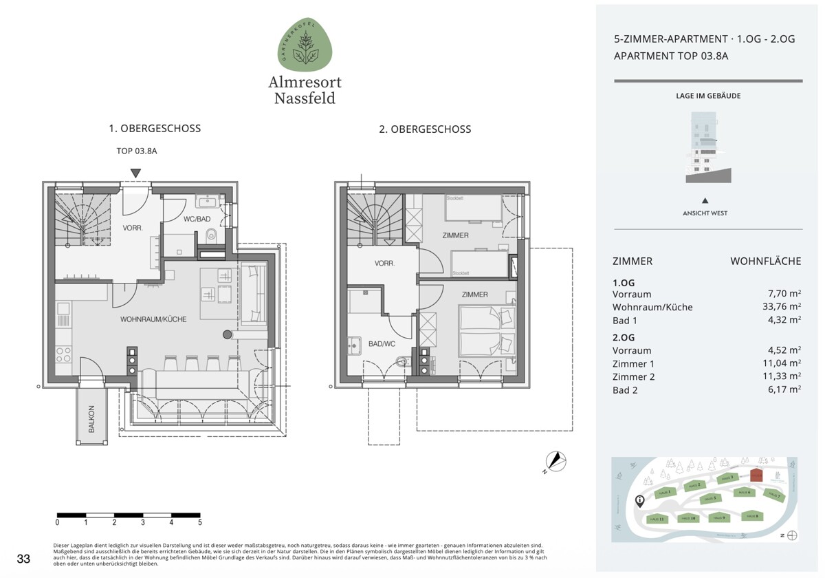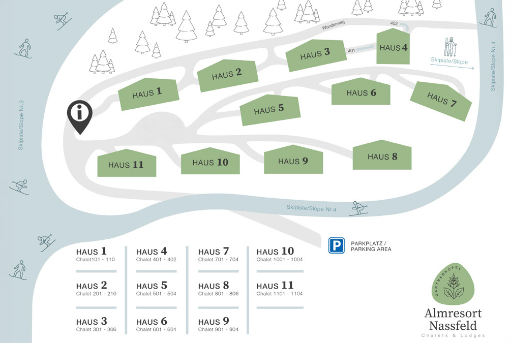 In sonniger Hanglage verteilen sich 57 stilvolle Appartements auf 11 Häuser, die sich harmonisch in die alpine Landschaft einfügen. Die Lage eröffnet weite Ausblicke auf die Skipiste und die umliegende Bergwelt – ein Standortvorteil, der sowohl Gäste als auch Investoren überzeugt.