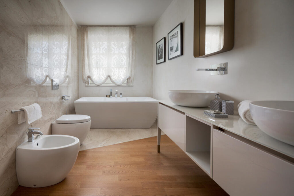 Für angenehme Temperaturen sorgen eine Fußbodenheizung mit Wärmepumpe, Gebläsekonvektoren und Klimaanlagen.