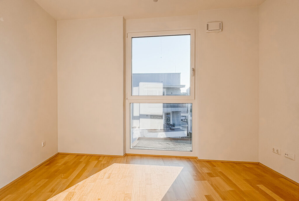 Sämtliche Fenster sind mit Außenrollläden ausgestattet; im Kinder- bzw. Schlafzimmer sorgen zusätzlich integrierte Insektenschutzgitter für erhöhten Wohnkomfort. Das geschmackvoll ausgestattete Badezimmer verfügt über eine Badewanne und bietet genügend Platz für Waschmaschine, Trockner sowie zusätzlichen Stauraum in Form eines Schranks.