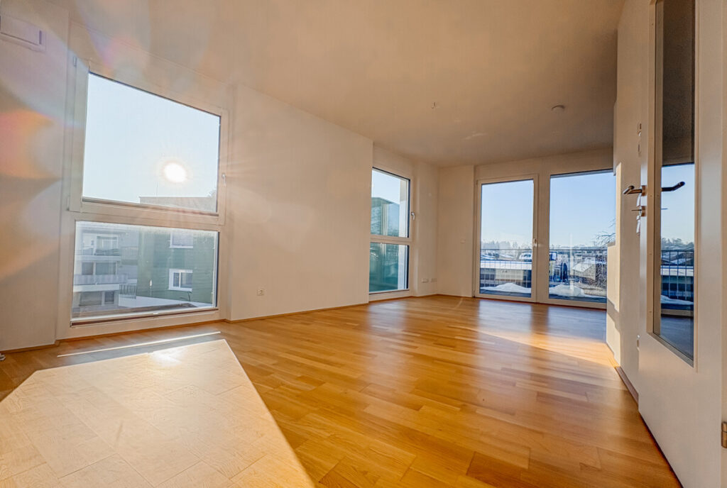 Die stilvolle 3-Zimmer-Wohnung befindet sich im 3. Obergeschoss eines 2023 erbauten Mehrparteienhauses mit Lift, zentral gelegen im Stadtzentrum von Seekirchen.