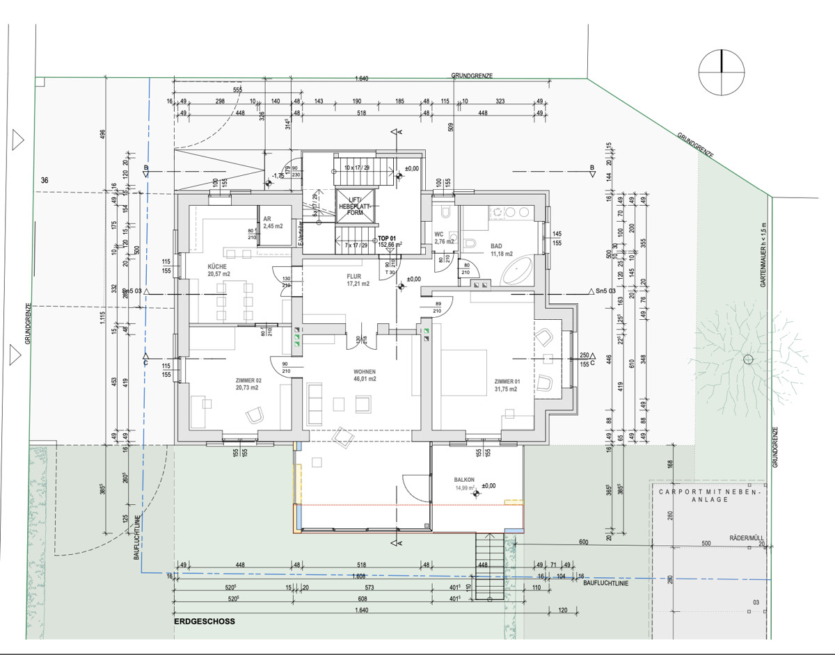 Diese großzügige Wohnung mit einer Raumhöhe von 2,95 m besticht durch einen hellen Eingangsbereich, einen großen Wohnbereich, einer Küche mit praktischem Abstellraum, einem Schlafzimmer mit Balkon, einem Arbeits-/Kinderzimmer, einem großen Bad, einem separaten Gäste-WC, einem Abstellraum und einer südseitig ausgerichteten, überdachten Terrasse mit ca. 15 m².