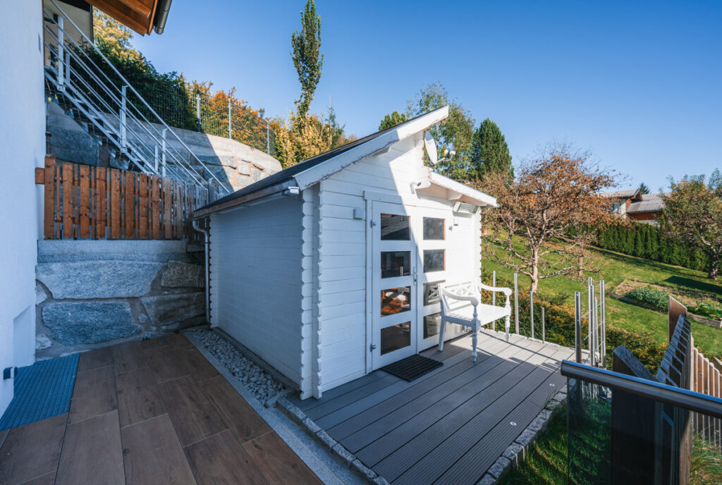 Der sorgfältig angelegte Garten bietet ist perfekt für gemütliche Stunden im Freien ausgestattet. Ein charmantes Gartenhäuschen sorgt für gemütliche Stunden, egal ob im Sommer oder Winter. Weiteres ist ein Rasenroboter vorhanden, der sich darum kümmert, dass der Rasen stets gepflegt ist.
