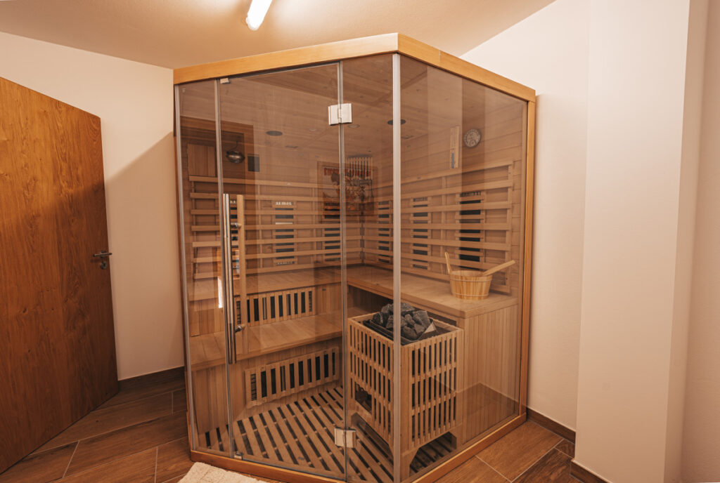 Eine hauseigene Sauna im unteren Bereich der Doppelhaushälfte ist allseits bereit für Sie und die Familie oder Freunde. Genießen Sie die heißen Temperaturen, die bekanntermaßen das Immunsystem stimulieren, durchblutungsfördernd sind und Verspannungen lösen können.