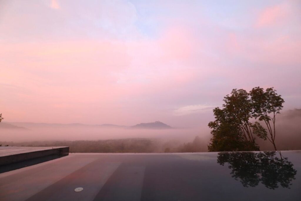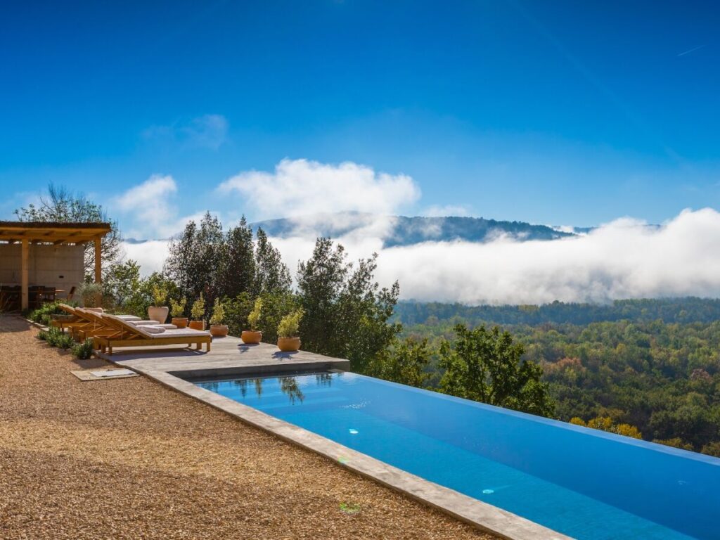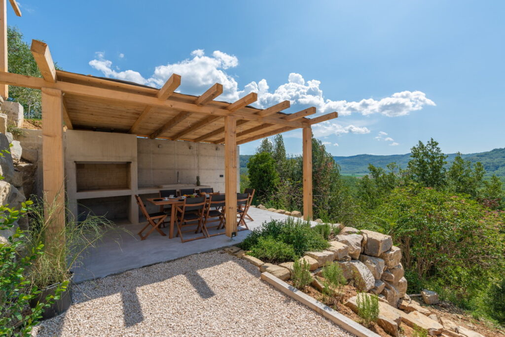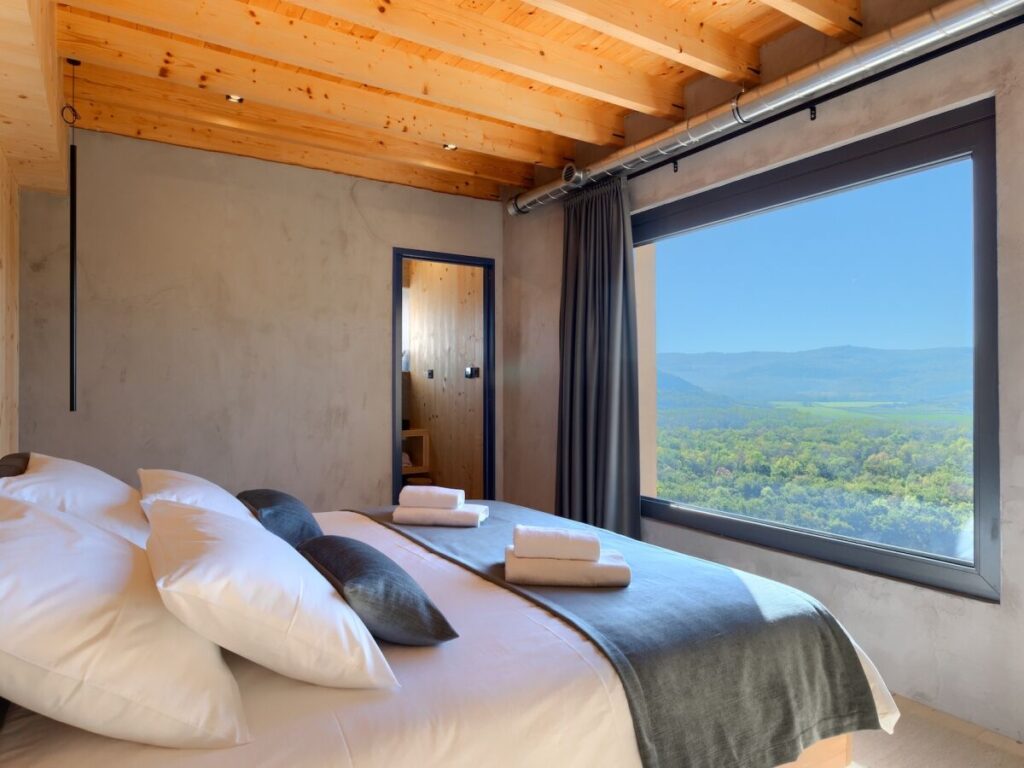 Diese luxuriöse Villa bietet ein atemberaubendes Panorama auf die umliegende Natur und eine malerische Aussicht auf die Stadt Motovun, die sich im Laufe des Tages wandelt.