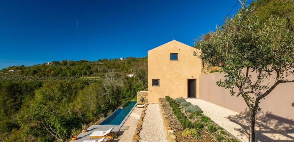 Diese neu erbaute Villa besticht durch eine moderne Architektur, die geschickt mit traditionellen Elementen kombiniert wurde.