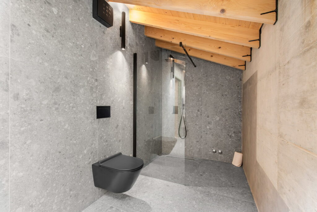 Das Innere der Villa ist elegant gestaltet und umfasst vier Schlafzimmer, jedes mit eigenem Bad im ersten und zweiten Stock. Im Erdgeschoss befinden sich ein offenes Wohnzimmer, ein Essbereich und eine voll ausgestattete Küche, die sich zur geräumigen Terrasse mit Infinity-Außenpool hin öffnet. Auf der gleichen Ebene gibt es auch einen Wellnessbereich mit Sauna und Whirlpool, ein Gäste-WC, eine Dusche und eine Waschküche.
