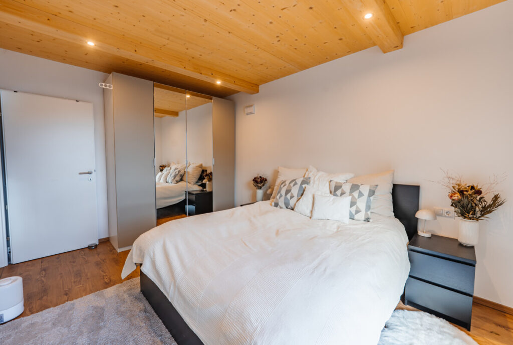 Die Wohnung befindet sich barrierefrei im 2. Obergeschoss und wurde in hochwertiger Massivholzbauweise errichtet, was für ein angenehmes Wohnklima und nachhaltige Qualität sorgt. Ein Tiefgaragenparkplatz sowie ein zusätzlicher Freistellplatz sind ebenfalls vorhanden.