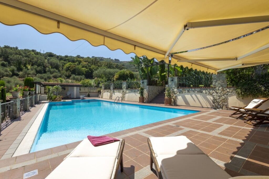 In einer der bezauberndsten Gegenden von Imperia, nur wenige Autominuten vom Meer entfernt (Entfernung zum Meer: 5 km), befindet sich die Villa „La Fleurie“, ein Anwesen von ausgezeichneter Qualität, das sich durch einen rustikalen und ländlichen Stil auszeichnet. Die zum Verkauf stehende Immobilie befindet sich in einem eleganten Wohnviertel und bietet einen freien Blick auf die umliegenden grünen Hügel sowie einen Blick auf das Meer und den malerischen „Parasio“ von Imperia, wodurch ein einzigartiges Panorama entsteht.
