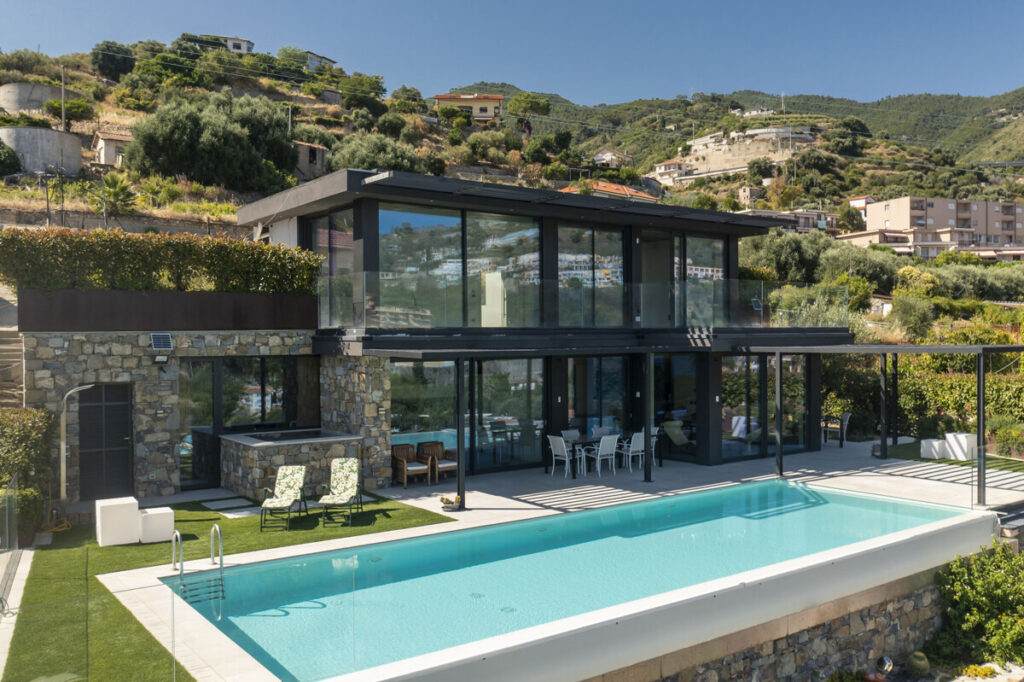 Die Liegenschaft besticht durch hochwertige Materialien, moderne Architektur und eine Energiezertifizierung der Klasse A4 – unter anderem dank einer Photovoltaikanlage für hohe Effizienz und Autarkie. Zeitgemäße Oberflächen, individuelle Möbel sowie modernste technische Systeme und Sicherheitssysteme runden das Anwesen ab. Eine Doppelgarage und ein Gästeparkplatz vervollständigen die Villa Italien. Eine exklusive Residenz für alle, die zeitgemäßes Wohnen in privater Lage mit Blick auf das ligurische Meer schätzen.