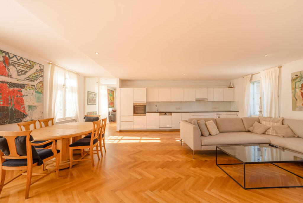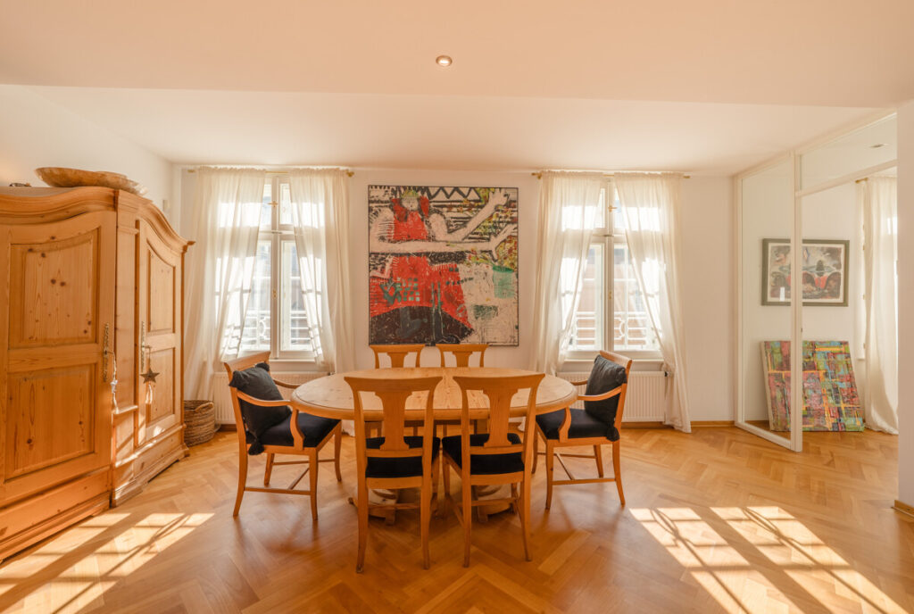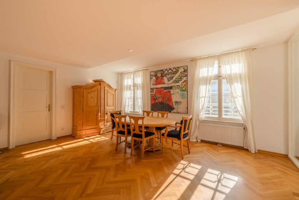 Viele Fenster und die Lage im 4. Obergeschoss schaffen ein freiheitliches und einzigartiges Lebensgefühl. Hier wohnen Sie nicht nur, hier leben Sie – mitten in der Stadt, in Ihrer eigenen Ruheoase über den Dächern Salzburgs!
