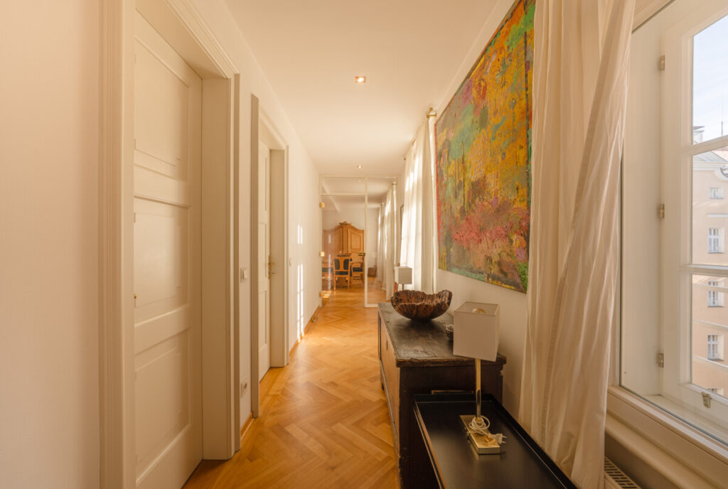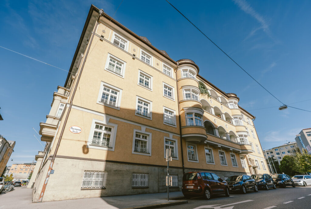 Eine Immobilie der besonderen Klasse erwartet Sie nur wenige Gehminuten vom Schloss Mirabell entfernt, inmitten einer einzigartigen Ansammlung herrlicher Altbauten. Diese historische Immobilie wurde in den Jahren 1924/1925 von einem Münchener Architekten geplant und erbaut. Sie erstrahlt nach liebevoller Restaurierung in neuem Glanz und mit modernster Ausstattung. Die für das äußere Erscheinungsbild des Gebäudes charakteristischen Erkerfenster, filigranen Zierelemente sowie die an der Fassade befindlichen gedrechselten Ecksäulen blieben erhalten und unterstreichen auf eindrucksvolle Weise das Flair eines klassischen Altbaus.