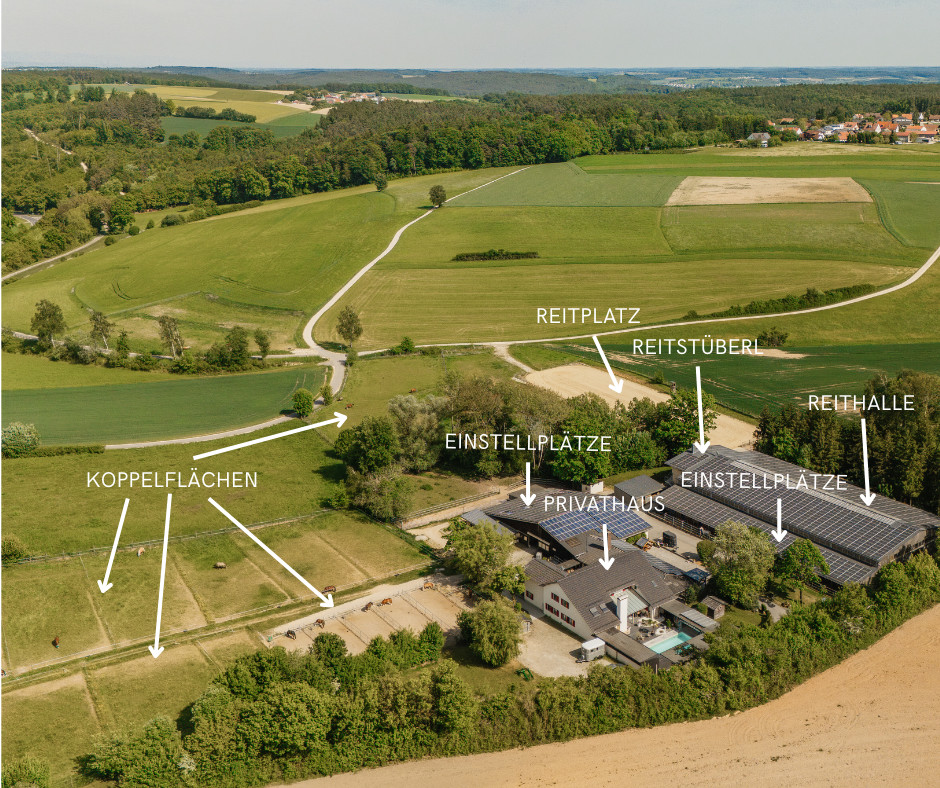 Auf ca. 8 Hektar Grundstücksfläche entfaltet sich eine Reitanlage, die ihresgleichen sucht – durchdacht geplant, mit Liebe geführt, bereit für neue Geschichten.