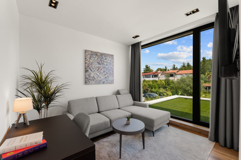 Diese beeindruckende, moderne Villa besticht durch ihren privaten Pool, eine Sauna, einen atemberaubenden Meerblick und eine großzügige Dachterrasse. All dies befindet sich nur fünf Minuten vom Stadtzentrum von Poreč und den malerischen Stränden entfernt.