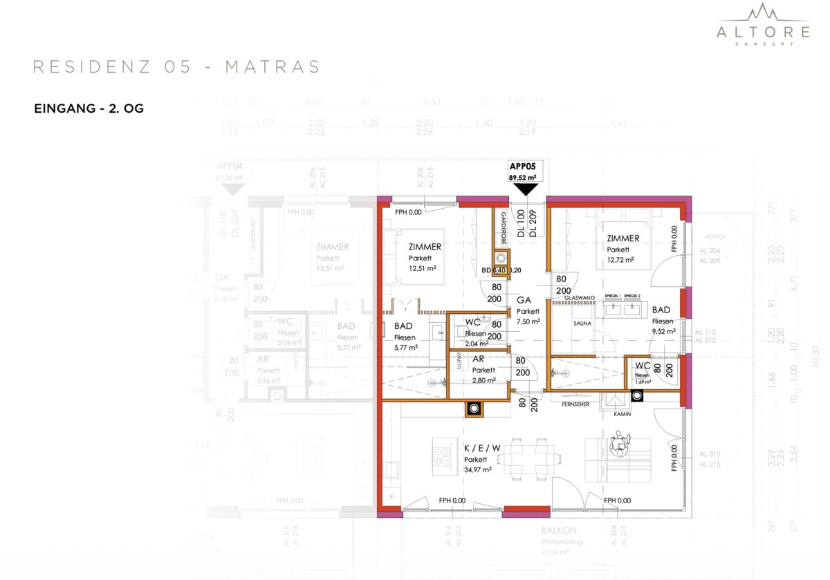 Die Top 05 Matras befindet sich im 2. Obergeschoss und bietet mit einer Wohnfläche von 89 m² den idealen Raum für stilvolles, komfortables Wohnen.
